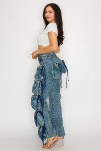 40582 Women's Mid Rise Straight Legged Jeans W/Laced up Legs