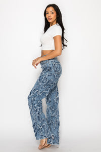 42013 High Rise Wide Leg Cross Patch Washed Down Jeans